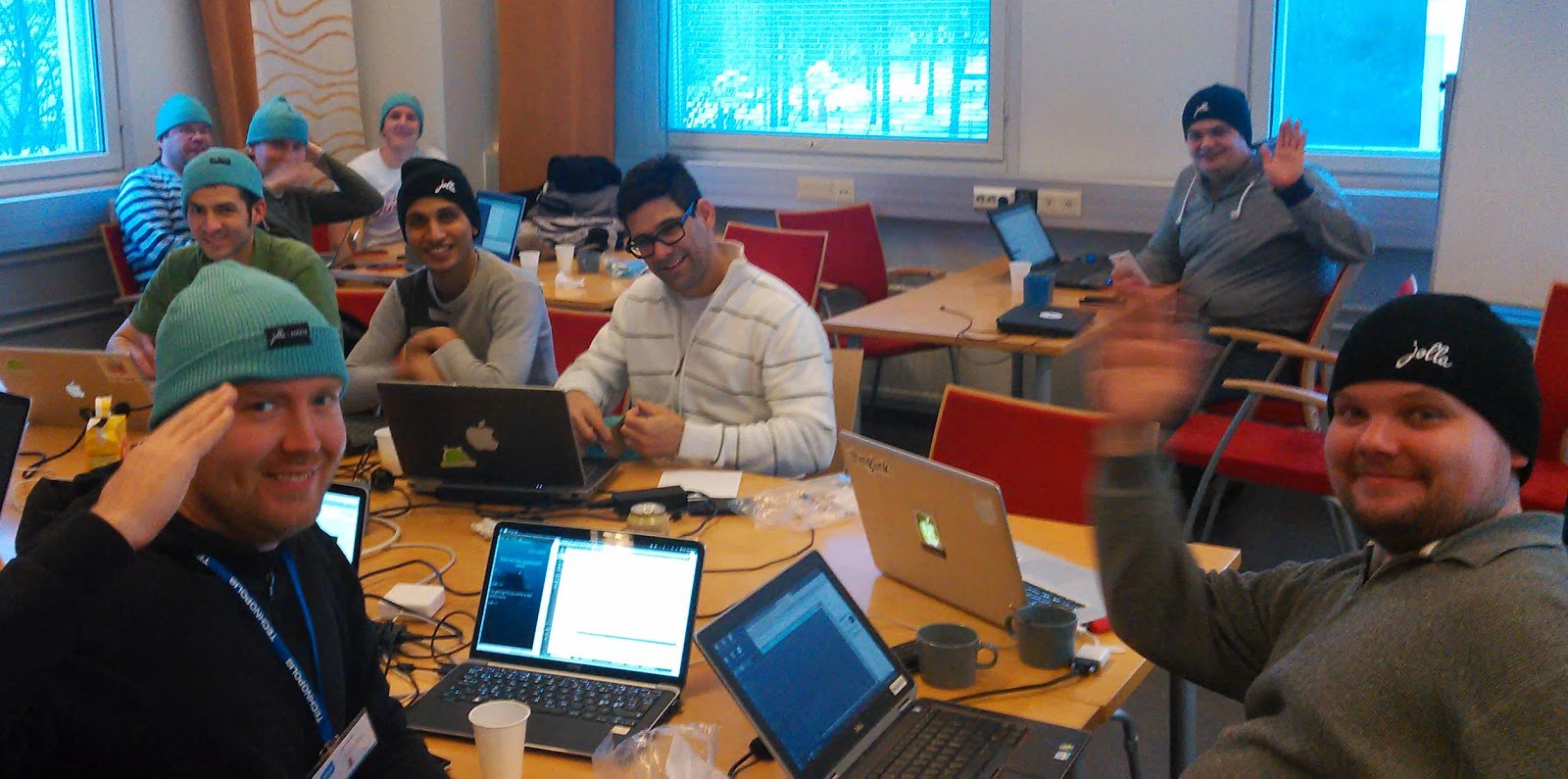 Seravo thanked all participants with good pizza and enough of drinks. Jolla gave everybody a familiar looking stocking cap with Jolla MAKIA logo (image above).